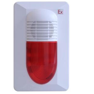 HX-100A(EX)型火灾声光警报器是一种安装在现场的声光报警设备,在火灾发生时提醒现场人员注意。本声光警报器为非编码产品,在电源端子施加DC24V电压后,声光警报器发出声、光报警信号。在用于石油、化工行业等有防爆要求的I区及II区时,需与海湾公司生产的安全栅配接使用。